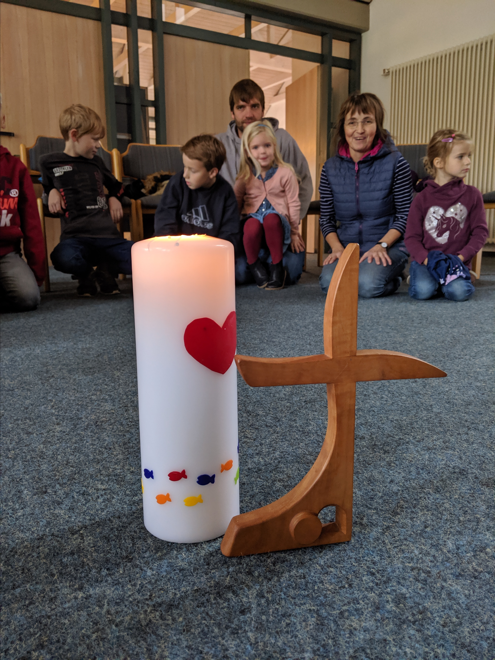 Wir möchten, dass die Kinder vertraut aufwachsen mit dem erfüllten Kirchenraum sowie auch der feierlichen Atmosphäre, wenn die Orgel spielt und die Pastorin das Wort an die Gemeinde richtet. Daher beginnt der Kindergottesdienst immer wieder dort mitten in der Gemeinde. Vom regulären Gottesdienst aus entsendet man uns zum Kindergottesdienst mit der von den Kindern selbst gestalteten Kerze ins St.-Paulus-Haus.