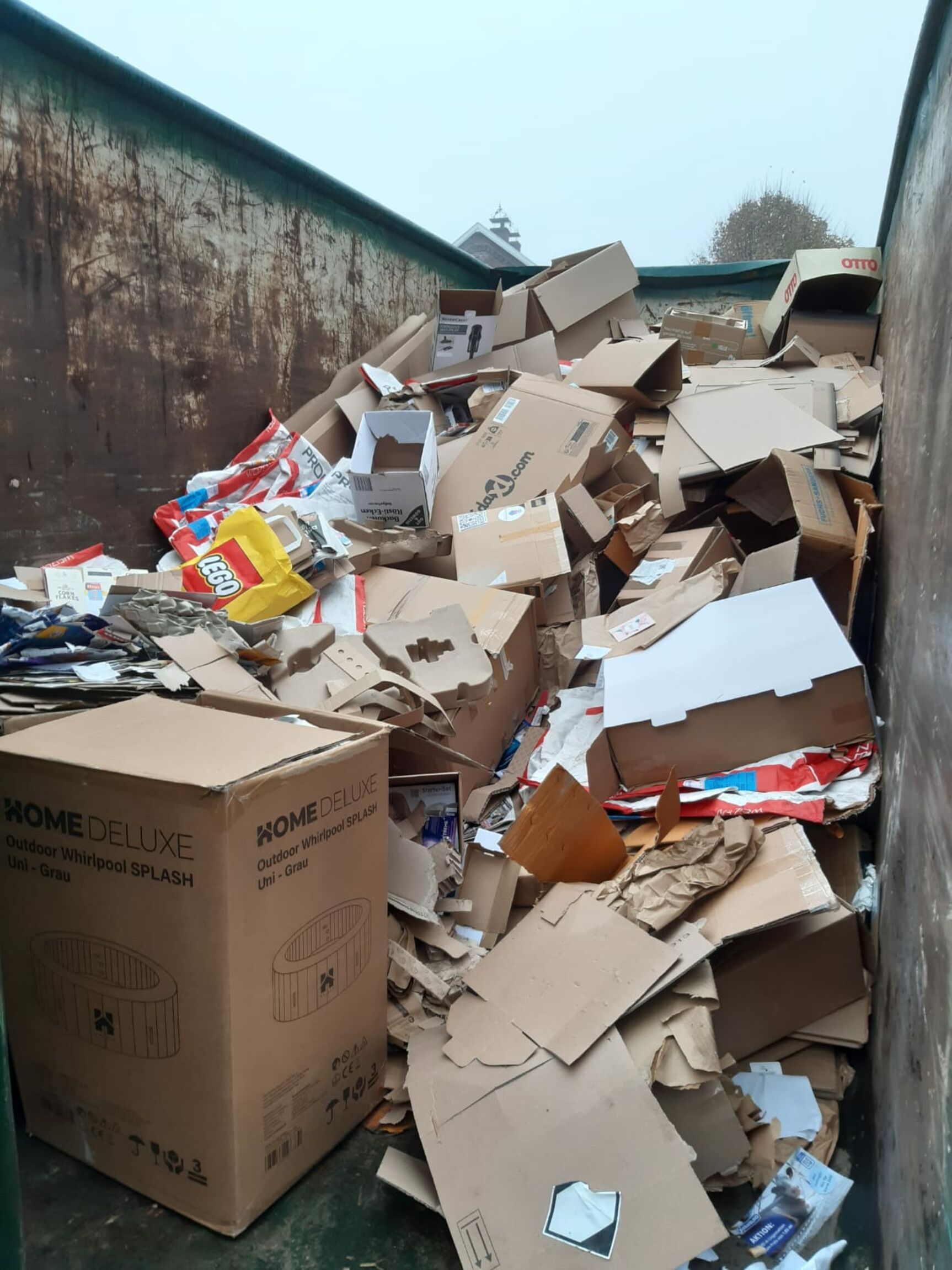 Daher: WENN Ihr schon am Freitag Euer Altpapier einlagern wollt, dann alles schön säuberlich aufstapeln und die Kartons MIT ihrem Inhalt einstellen, also nicht einfach die Kartons in den Container kippen!