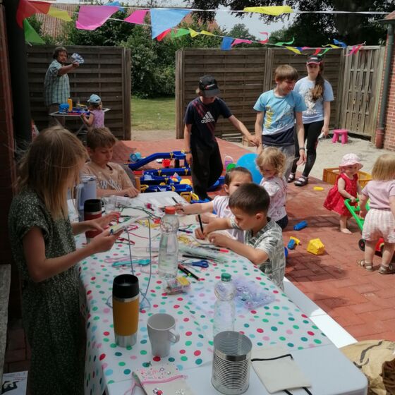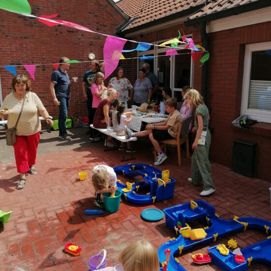 Sehr gerne schauen wir schließlich noch auf den Himmelfahrts-Gottesdienst zurück, den wir am 29.6. in Stallbrüggerfeld gefeiert haben! Spannend war im Vorfeld allein schon die Frage: Wagen wir´s draußen? Oder lieber nicht…? Doch unser Mut wurde belohnt: Das Wetter hielt, und 250 Leute kamen zu diesem gemeinsamen Gottesdienst der Kirchengemeinden Hesel, Holtland und Filsum – nicht allein aus diesen Gemeinden, sondern z.B. 25 Fahrradfahrer kamen aus der Gemeinde Amdorf/Neuburg! Wie schön ist es, einen solchen runden, bunten Gottesdienst inmitten von Gottes wunderbarer Schöpfung zu feiern, mit mitreißendem, vielstimmigem Sing- und Posaunenchor – das Titelbild demonstriert uns die volle Besetzung! 😊 – und auch die Jüngeren unter uns kamen in einem tollen Kinderprogramm auf ihre Kosten. Abgerundet wurde dieses gelungene Miteinander durch die wunderbare Organisation des OBV Stallbrüggerfeld, der nicht nur für Sitzgelegenheiten gesorgt hatte, sondern nach dem Gottesdienst auch für lecker Kuchen und Kaffee, so dass noch Viele gerne lange zur Begegnung und zum Austausch blieben … bis allmählich die ersten Tropfen fielen! Ich kann nur sagen: Ich freu mich schon auf 2028, wenn Filsum wieder „dran“ ist und sich somit die Gelegenheit zur Wiederholung bietet! Ganz herzlichen Dank aber Allen, die hierbei so tatkräftig mit angepackt haben!